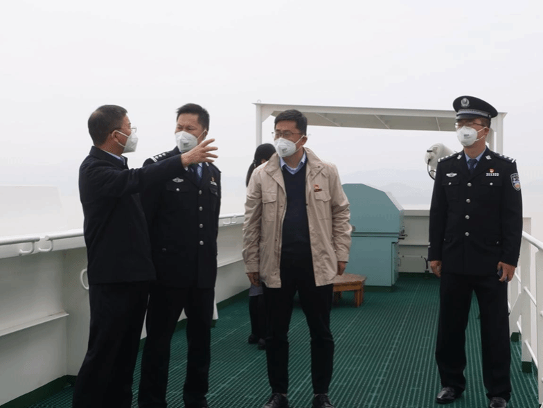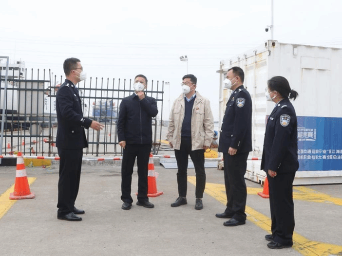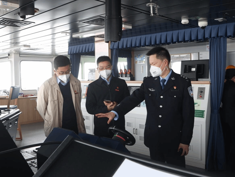 会议开始前,边检站相关人员与日韩无码 一行人来到宁波舟山港梅山港区,共同参观了边检站执勤现场,登上停靠在梅山港的货轮。边检站工作人员结合口岸地理分布、口岸的经济建设的实际,从边防检查的执勤任务、执勤要点等方面进行分析解说,让日韩无码 老师对边检执勤执法工作有了更深入的认识。