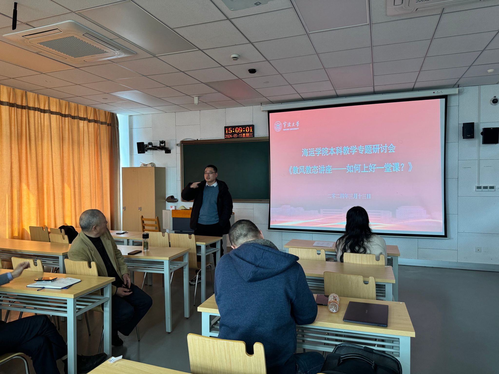 3月13日下午,为迎接教育部新一轮本科教育教学审核评估工作,日韩无码 在梅山校区综合教学楼203教室组织召开了《教风教态讲座——如何上好一堂课?》本科教学专题研讨会,对新一轮本科教育教学审核评估工作提前安排部署。会议由教学副院长叶晓飞主持,日韩无码 党政领导、全体任课教师参加会议。