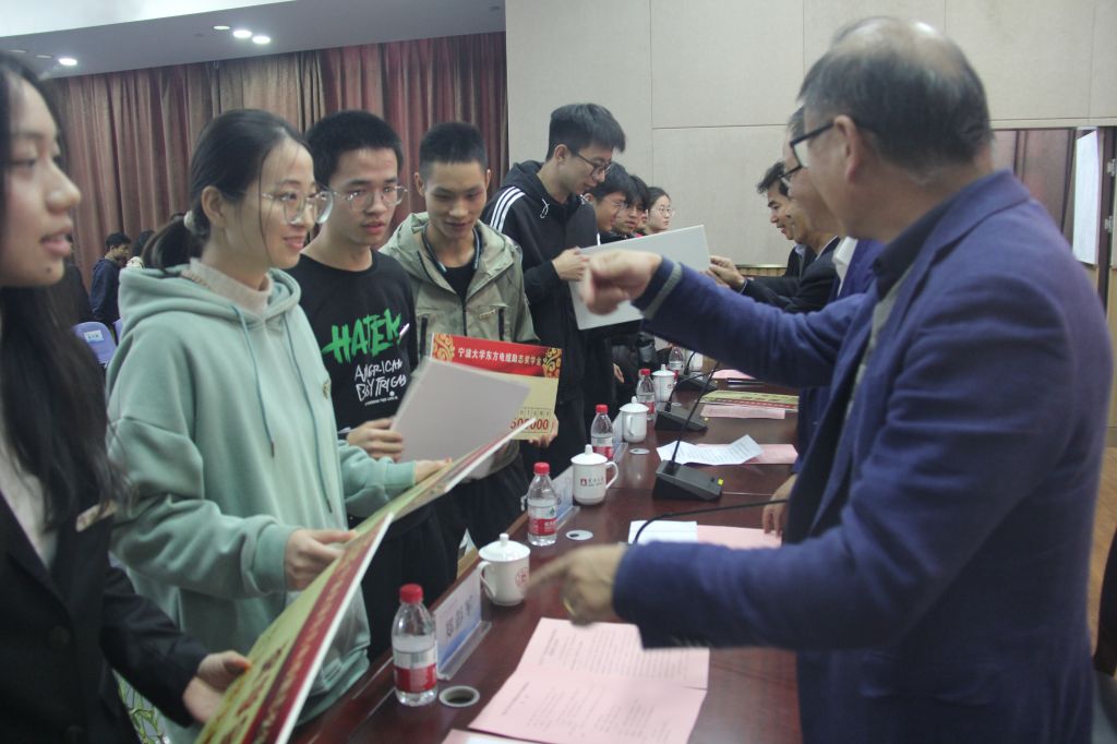 颁奖典礼上,学生处相关负责人宣读了宁波大学2022—2023学年东方电缆励志奖学金获奖学生名单。主席台嘉宾、领导为获奖同学颁奖并合影。2021级船舶与海洋工程专业许嘉辉作为获奖学生代表发言,表示获得奖学金只是开始,将来会通过自身努力以更加负责的态度去回馈社会。