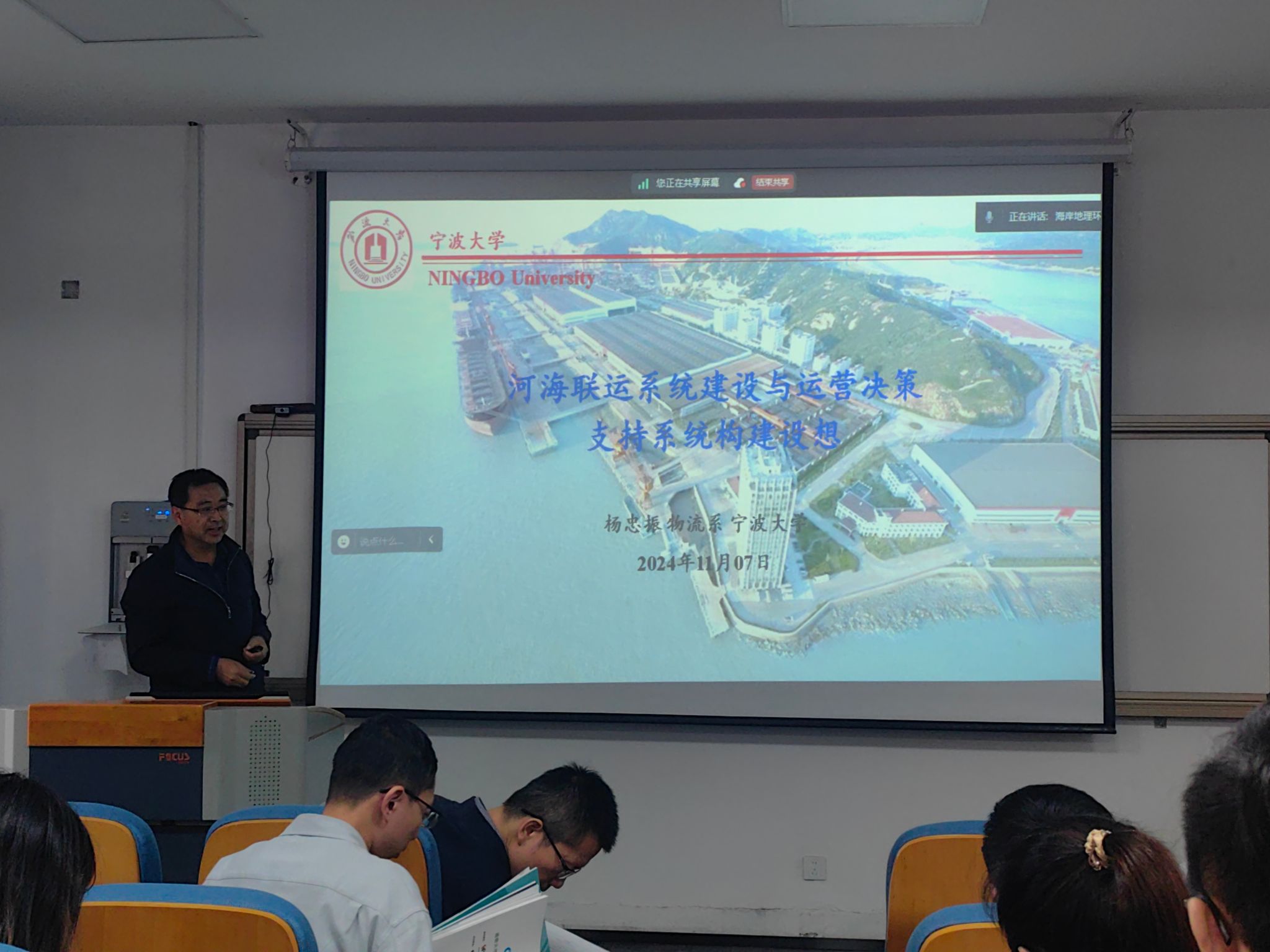 会上,来自日韩无码 的杨忠振教授、万岭教授、刘桂云教授等6位老师与来自土木工程与地理环境学院的孙伟伟教授、章子华教授、谷汉斌教授等9位师,围绕地理大数据与航运物流、遥感与海洋新能源开发等8个主题,分别做了学术报告,并展开了热烈的讨论交流。