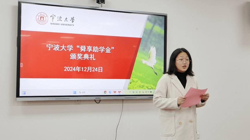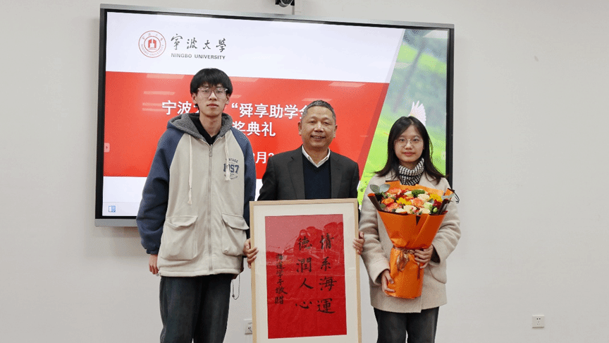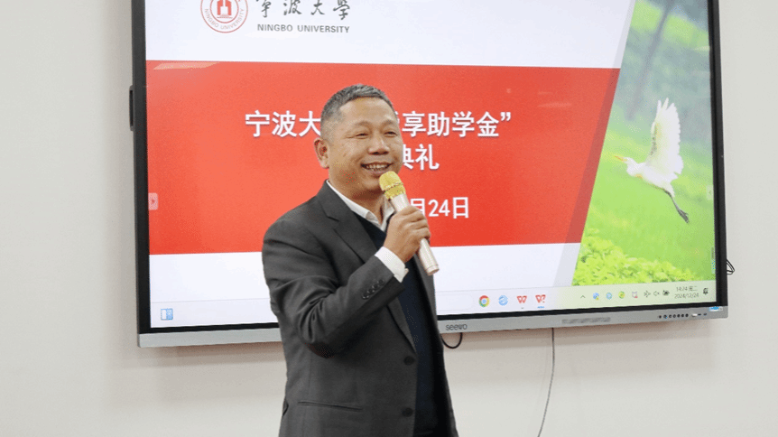 典礼伊始,主持人杨琦首先对出席典礼的各位嘉宾表示热烈的欢迎,张宾书记宣读了2024年宁波大学“舜享助学金”获奖名单,黄文杰先生为获奖学生颁奖并向获奖的同学们表示了祝贺。