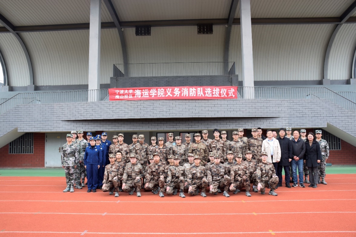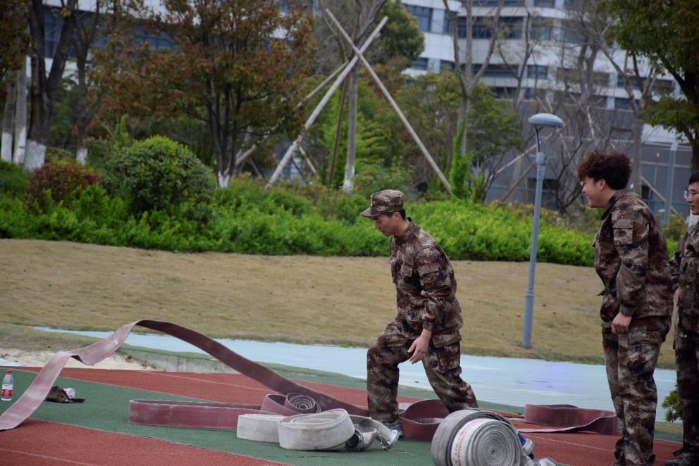 在操场举行志愿消防队选拔仪式。本次选拔仪式涵盖了多项内容,旨在选拔出一批本领强、敢担当的学生,组成义务消防队,提升学生们的消防安全意识,北仑区消防救援官兵来校进行选拔指导,梅山校区保卫部支持协助。